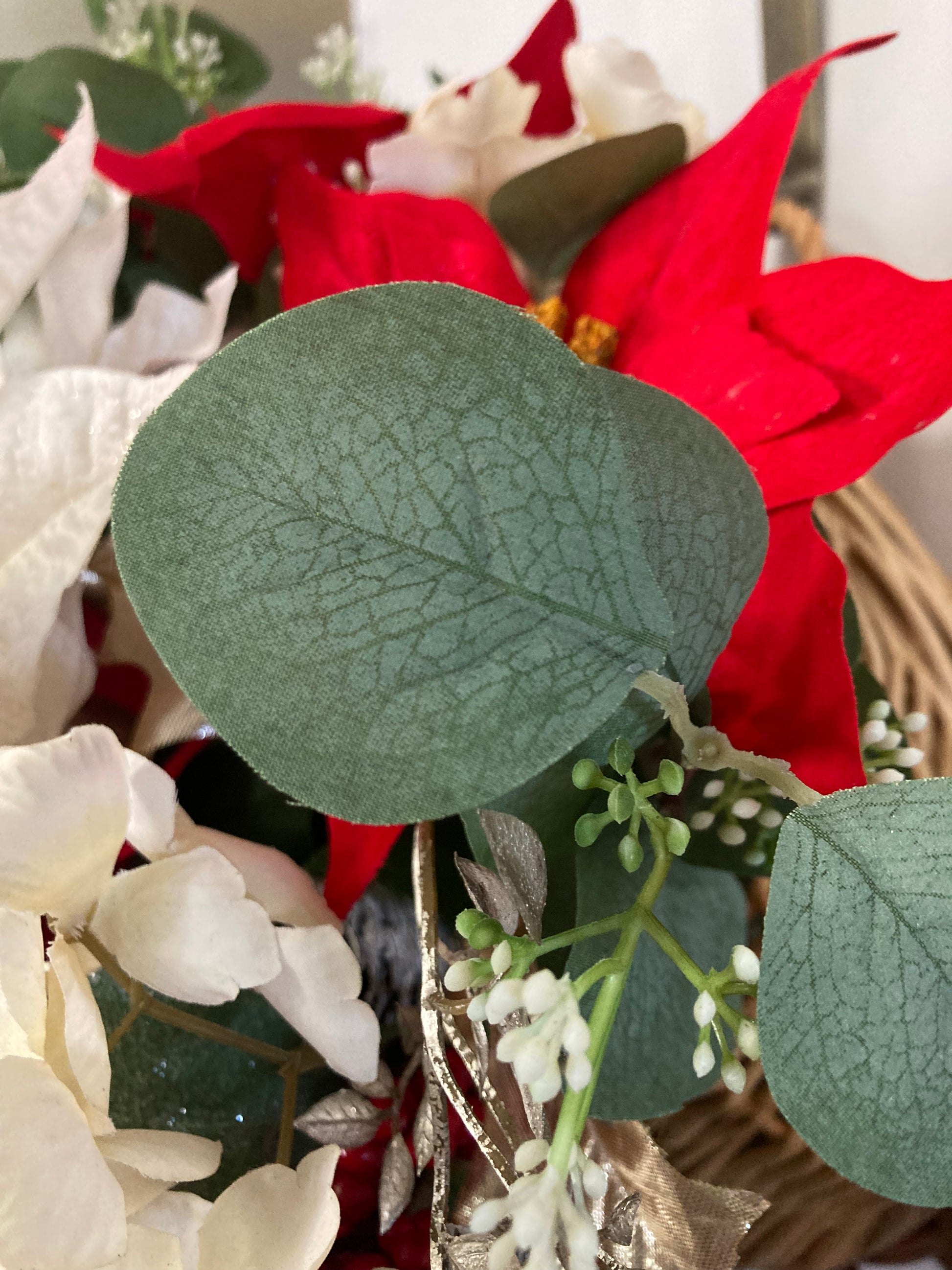This is door floral basket perfect for the upcoming holiday season. This is made of a woven basket filled with florals, this is an elegant and Graceful basket that will make your door smile. This floral basket will welcome your guests with comfort and warmth of joy.
