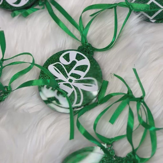 These are Christmas Ornaments made out of acrylic products. Accented with vinyl