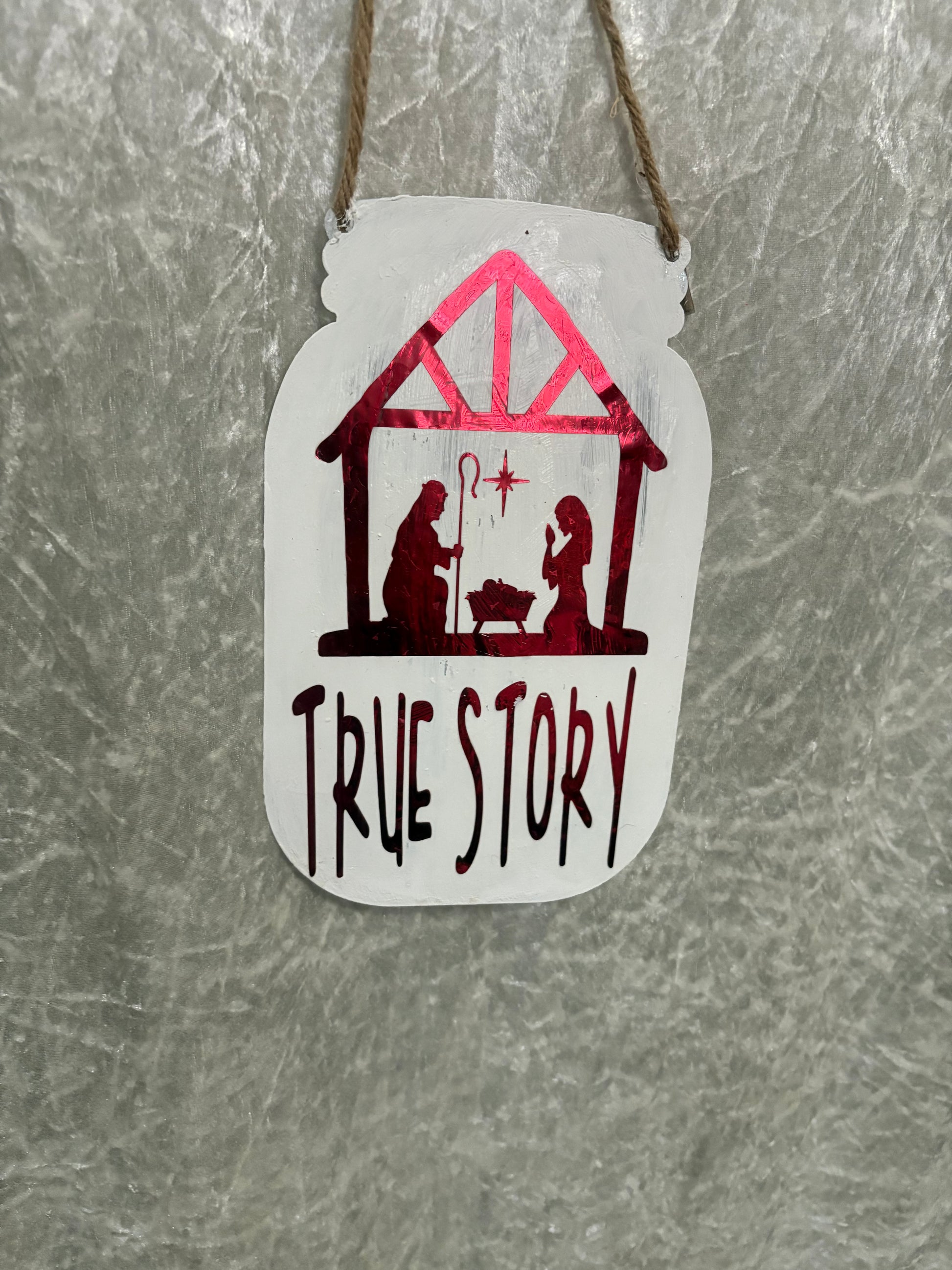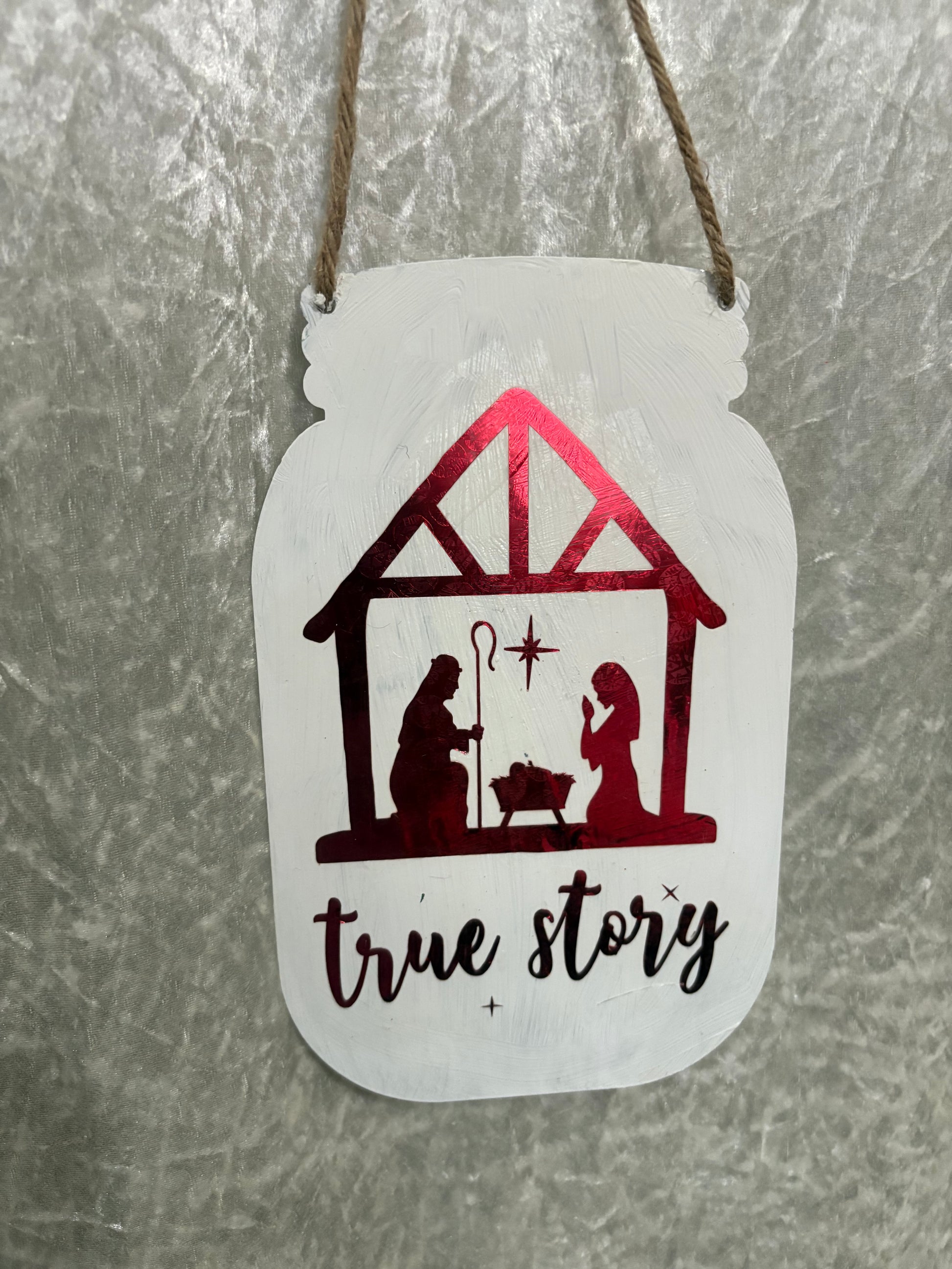 This is a simple but beautiful door hanger perfect for the holiday season. It’s a galvanized metal painted and accented with a vinyl design. It’s a festive decor perfect for decorating for Christmas