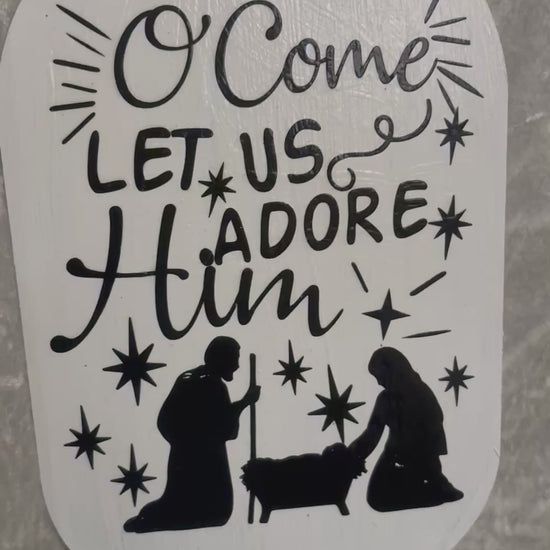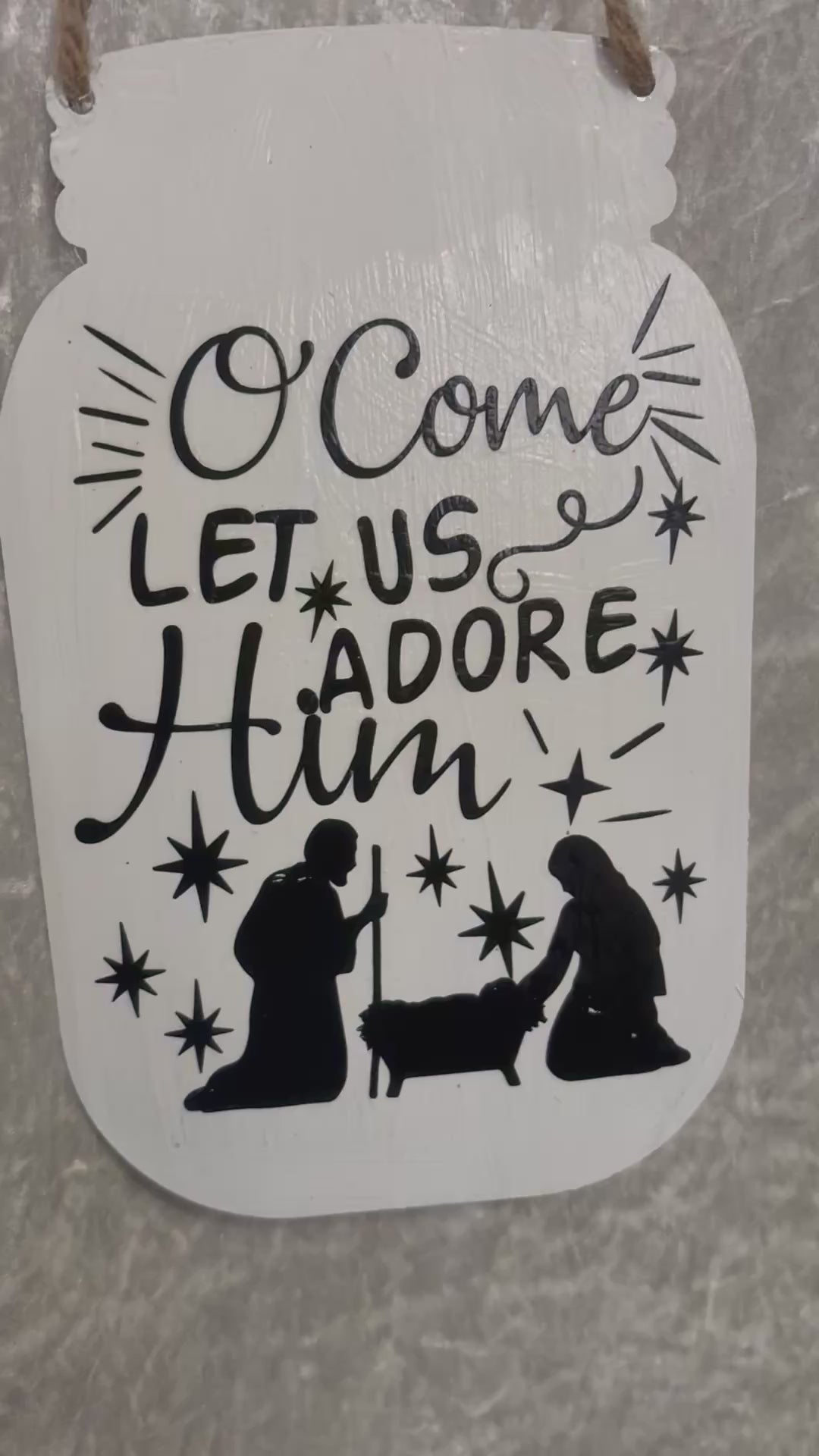 This is a simple door hanger perfect for the upcoming holiday season. It’s great for Christmas decorations. It’s made out of a galvanized metal painted accented with a vinyl design